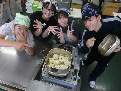 子どもが喜ぶ料理をつくる勉強をしています。今回は、クレープ、カップケーキ、肉まんをつくりました。子どもだけではなく、大人も喜ぶおいしい料理ができました。
