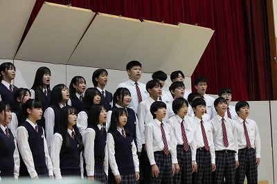 各学年の代表者が堂々と発表しました。発表テーマは1年生代表「私の奏でる音」、2年生代表「自分さえできればいい?」、3年生代表「悩む」でした。本日の結果は、明日の文化祭の閉会式で発表されます。
