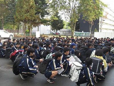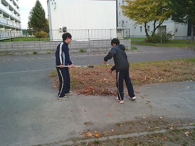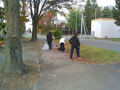 生徒会主催のボランティア活動を実施しています。落ち葉拾いボランティアをいくつかのグループに分けて行っています。今日は第1回目です。今後、3日間予定されています。