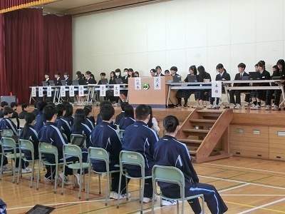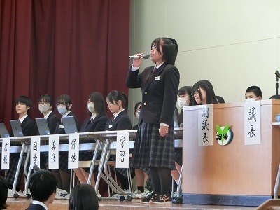 本日、生徒総会が行われ、後期の活動計画が承認されました。翔陽中学校は1・2年生が中心となってなって活動します。日頃の活動をしっかり行い、よりよい中学校を自分たちでつくりあげましょう。