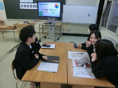 大谷高校の生徒会と本校の生徒会が意見交流しました。「いじめについて」「交通安全について」「行事の取組について」など多岐にわたる話題について話し合いました。