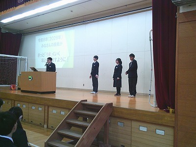終業式を行い、校長先生からのお話と生徒代表の挨拶がありました。長かった2学期も終え、冬休みを迎えます。明日から、冬休みに入ります。3年生は受験に向けてラストスパートです。充実した冬休みをお過ごしください。
