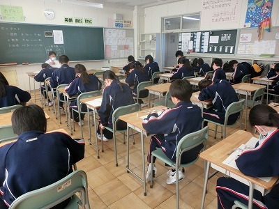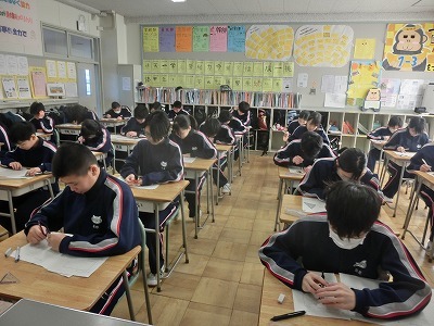 大雪の影響で、2日間に渡って実施しました。範囲が広い分、点数がとりにくいテストですが、自分の力を測るには適しているテストです。この結果を受けて、自分の目標を再設定しましょう。