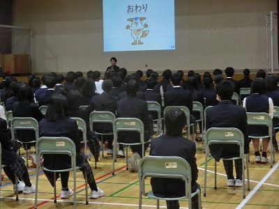 帯広警察署から講師を招き、1・2年生を対象とした防犯教室を行いました。SNSの使い方と不審者に遭遇したときの対処法について学びました。