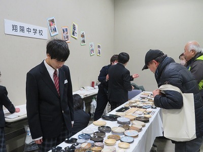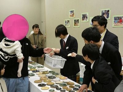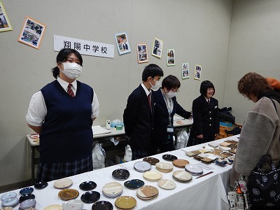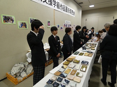 8組が合同展示即売会に参加しました。今回も、多くのお客さんが来て大忙しでした。丁寧な接客も好評でした。これまでに作った作品が多くの人を喜ばせていることは、うれしいですね。