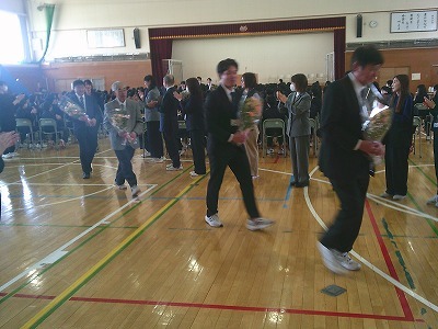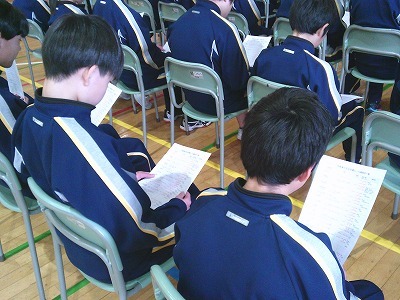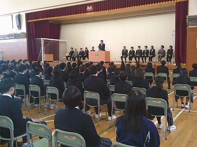 午前中に通知表が配付され、5時間目に修了式を行いました。校長先生の式辞では、今年1年間の翔陽プライドを振り返りました。その後に、行われた離任式では、転出される15名の教職員からの挨拶がありました。