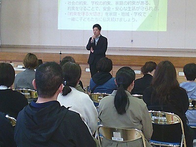 学年集会の中で、校長先生から自転車に関するルールやスマホ利用で起こっているトラブル等について紹介してもらいました。被害者にも加害者にもならないためにルールはしっかり守りましょう。