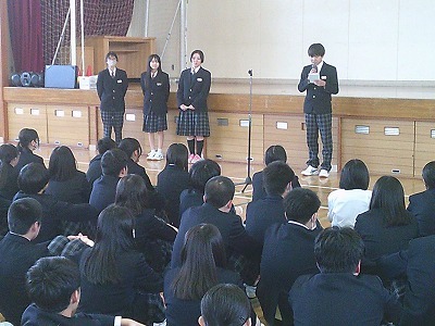 団長、実行委員長、各係の委員長から話しがありました。日曜日から3泊4日の修学旅行が始まります。函館、ルスツ、小樽、札幌を訪れます。それぞれの学習テーマをもとに、学びを深めます。