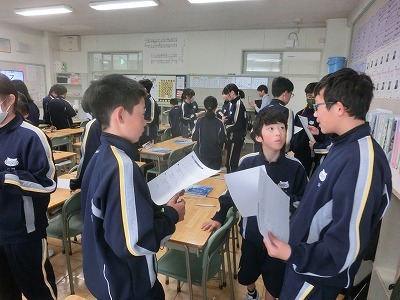 1学年の道徳の授業で、いじめを題材に考え、議論しました。いじめは、どんな理由があってもいけないことです。