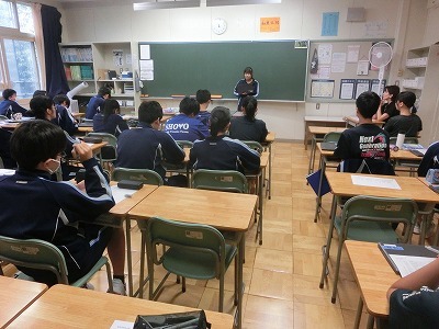 各学級で意見発表会がありました。毎年生徒の意見発表を聞いていると、大人にとっても新鮮であり、新たな発見もたくさんあります。今年は、学年意見発表は行わず、各学年の代表1名が全校生徒の前で発表する場があります。