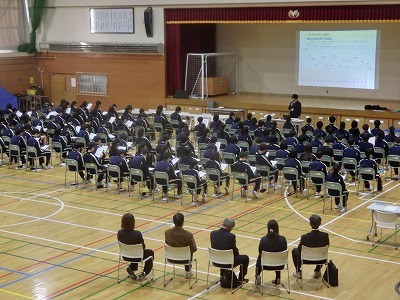 学校支援地域本部の事業として実施しました。今年も畜大錬成会の塾長を講師として、高校入試の仕組みと現状を伝えていただきました。また、今年は主幹教諭から高校でかかるお金の話も行いました。参加者の多くから、とてもためになったという声をいただきました。