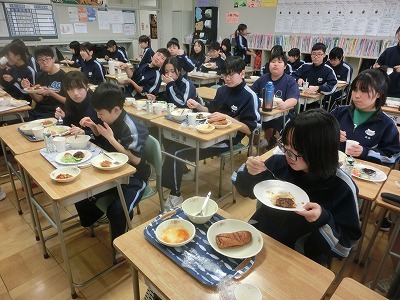 2年生は、調理実習でハンバーグをつくっています。ハンバーグとそれにそえる野菜も上手に切ることができました。給食と一緒に試食し、生徒は大変満足した様子でした。