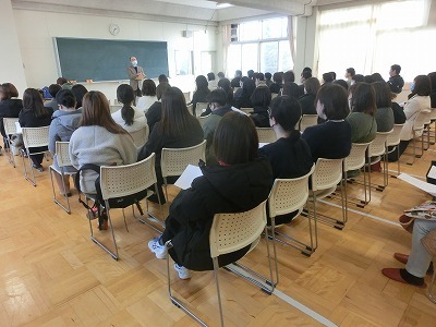 外部講師として助産師の先生を招き。生と性について授業をしていただきました。人が生まれるという神秘性のお話から性感染症などについて、幅広い視点から生と性を考えました。