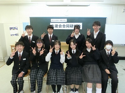 大谷高校の生徒会と本校の生徒会が意見交流しました。「いじめについて」「交通安全について」「行事の取組について」など多岐にわたる話題について話し合いました。
