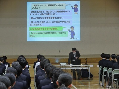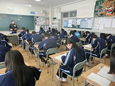 帯広警察署から講師を招き、1・2年生を対象とした防犯教室を行いました。SNSの使い方と不審者に遭遇したときの対処法について学びました。