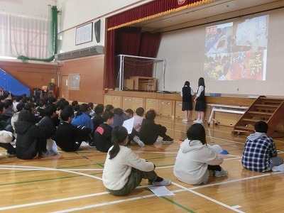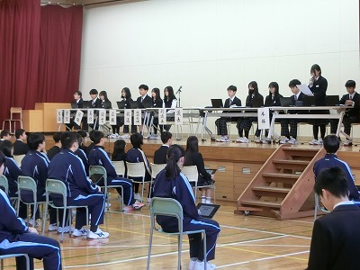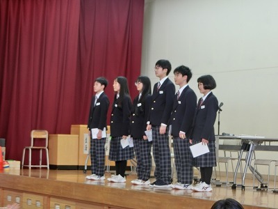 来年度の学校の中心を担うメンバーが出揃い認証されました。活躍を期待しています。生徒総会では、後期の活動について総括し、各委員会へ意見や要望が出されるなど、次年度の活動へ向けてのよい引き継ぎの場となりました。